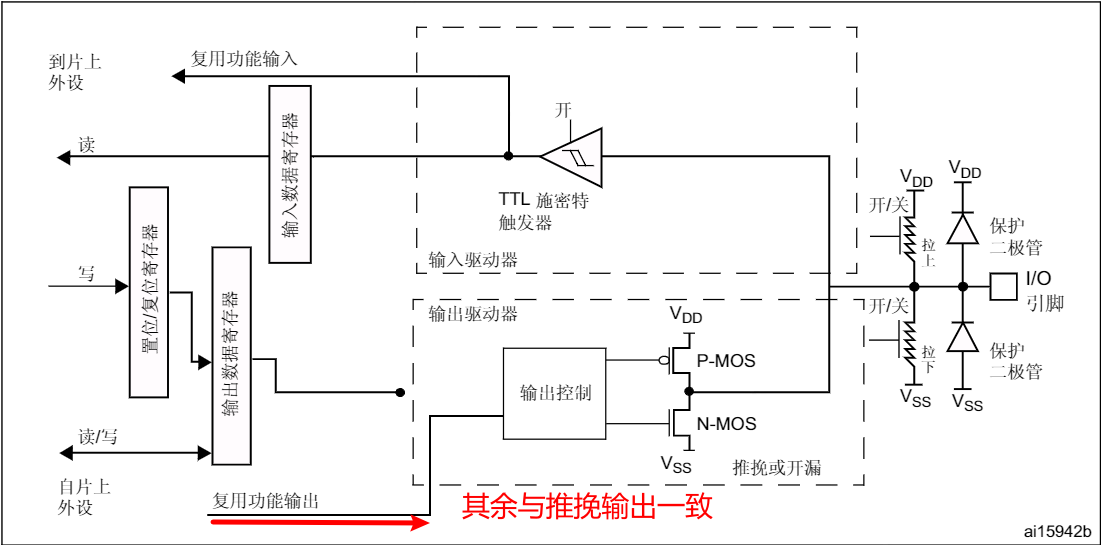 - 引脚在复用功能(如 USART、SPI、I2C 等)和推挽输出之间切换。