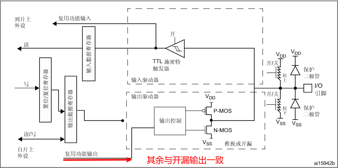- 引脚在复用功能(如 USART、SPI、I2C 等)和开漏输出之间切换。